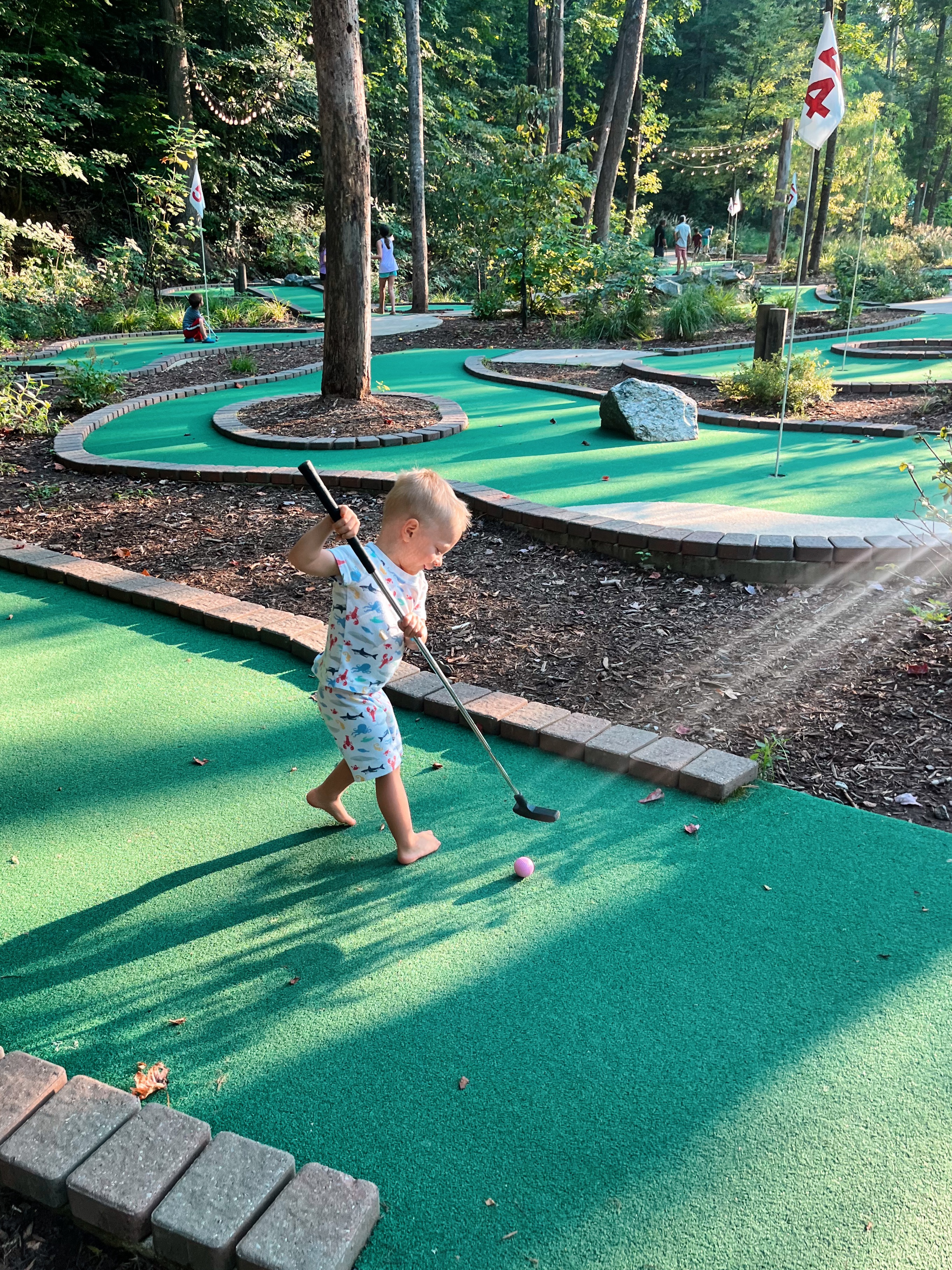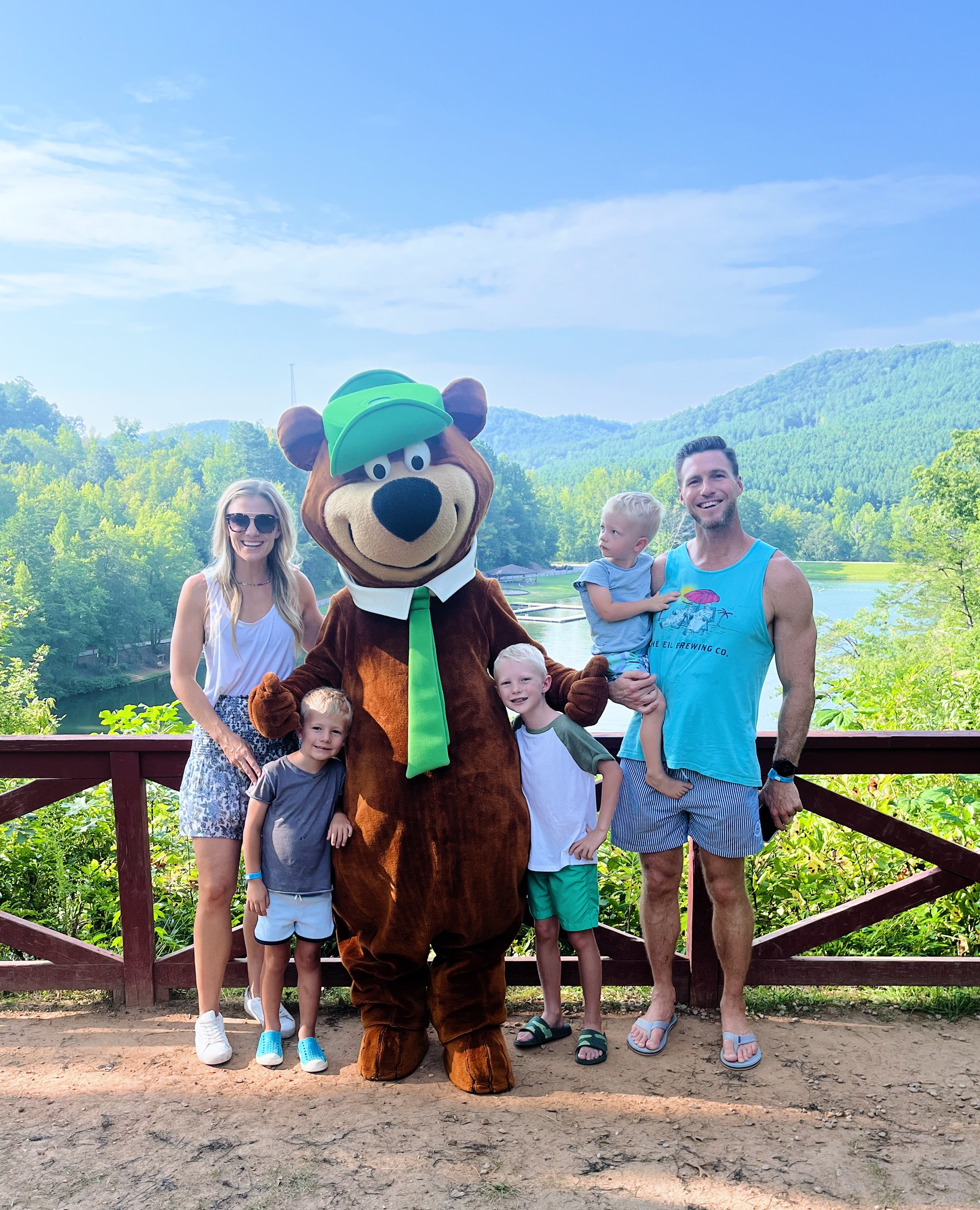 I meant to recap our mini vacation to Jellystone Golden Valley on the blog this week but my early morning wake-ups for work time were bulldozed by early morning wake-ups from the boys so a brief highlight in today’s post will have to do. We adore Jellystone Golden Valley so much and opted to spend a couple of nights at the campground in a cabin to celebrate Rhett’s birthday as a family last weekend! It’s such a great spot for families because there is so much to do from mini golf, gem mining and jumping pads to fishing, hiking, swimming and arts and crafts activities.