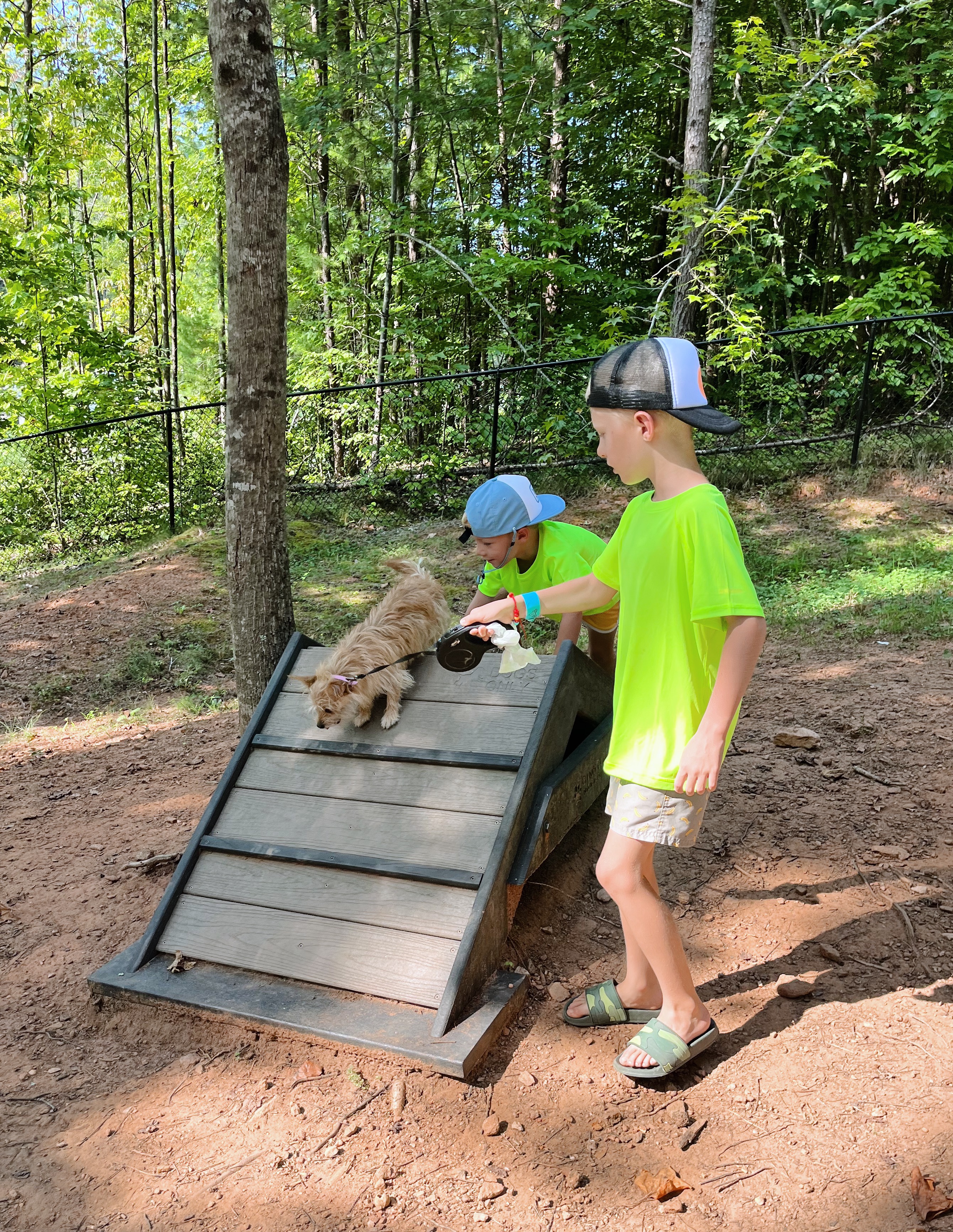 This thing was huge and impressive and our boys had a blast climbing all over it, sliding down the slides and jumping off the high jumps into the cool lake water. Our visit coincided with 90+ degree temperatures outside so we spent a lot of time in the lake and at the water playground.