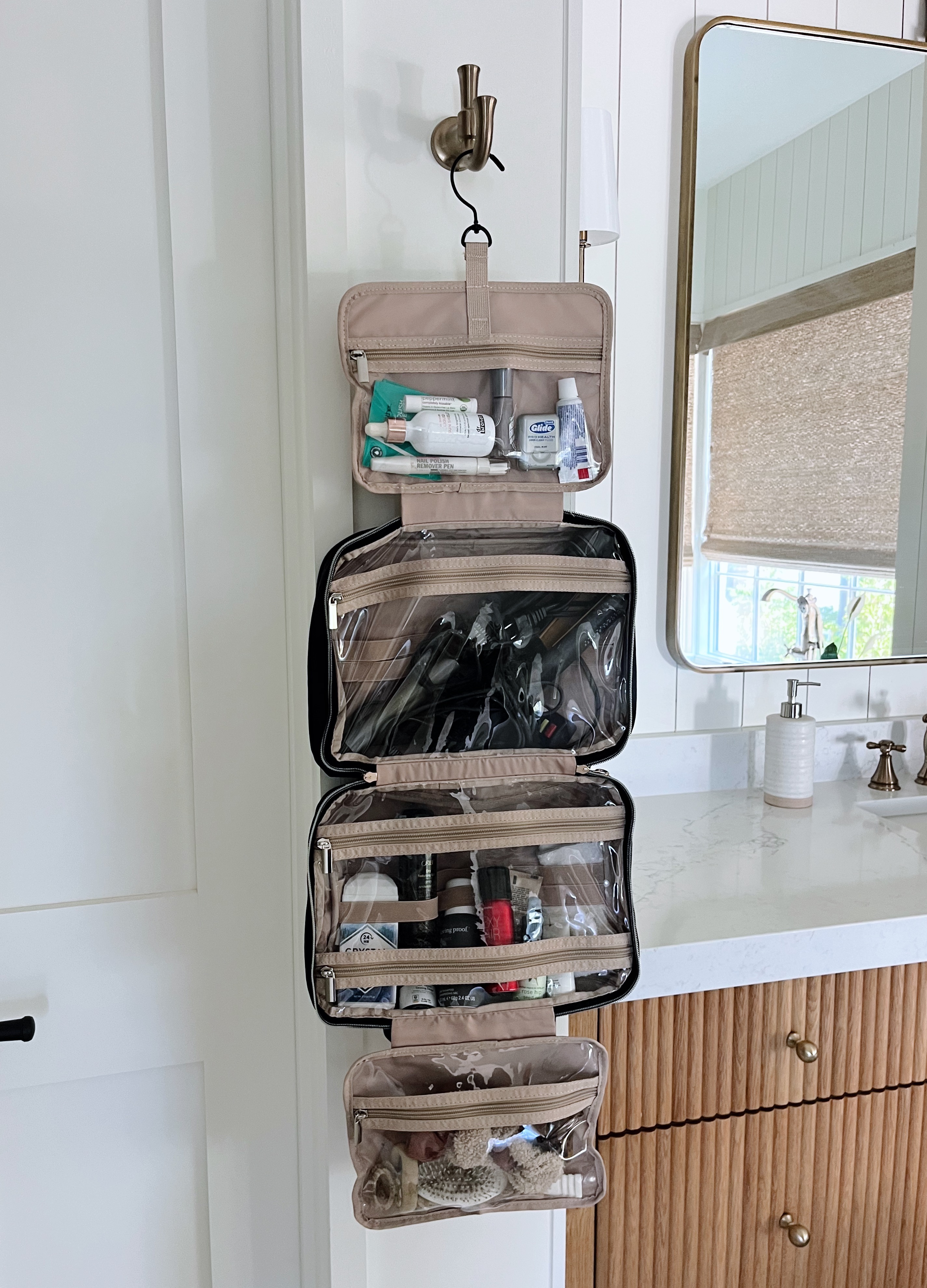 This is the hanging toiletry bag I ordered after I saw my friends Danielle and Jess both had it hanging in the bathroom we shared during our girls’ weekend in the mountains earlier this summer. It appeared to hold a lot but wasn’t a complete monstrosity when rolled up and zipped together. I ordered the black version in large (it comes in a bunch of colors and patterns) and it’s been a favorite of mine ever since. I figured I should highlight it here since I’m using it on back-to-back travel weekends and thoroughly enjoying the way it makes keeping toiletries and hair accessories organized a little easier. I’m also keeping this one in mind for holiday gift-giving!