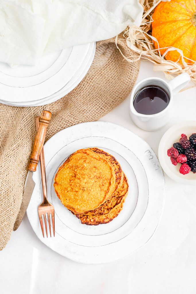 Oatmeal Pumpkin Protein Pancakes (A fun fall breakfast with a little boost of protein.)