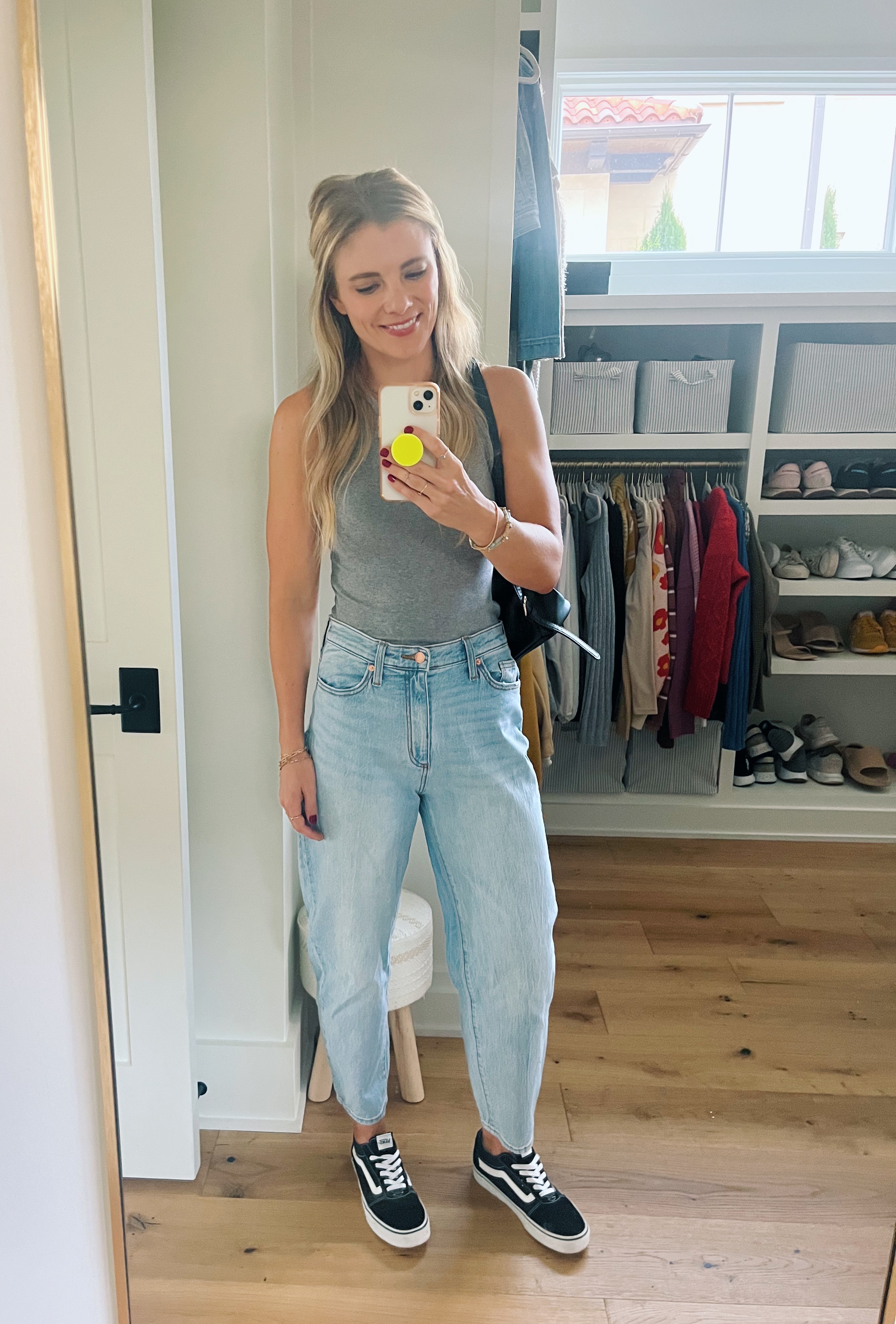 This is a style I realize not everyone is into but as someone with a pear shape, I love balloon fit jeans. They come in at the waist but leave lots of room for my hips and booty to breathe. I also like the way they taper in at the ankle so they don’t have a super-baggy wide-leg look. This pair was the first pair of Target jeans I’ve ever tried and I was instantly a fan. It’s another find I’d recommend sizing down in (I’m usually a 6 or 8 in jeans and I’m a 4 in these which is blasphemy) and they’re currently on sale as well.