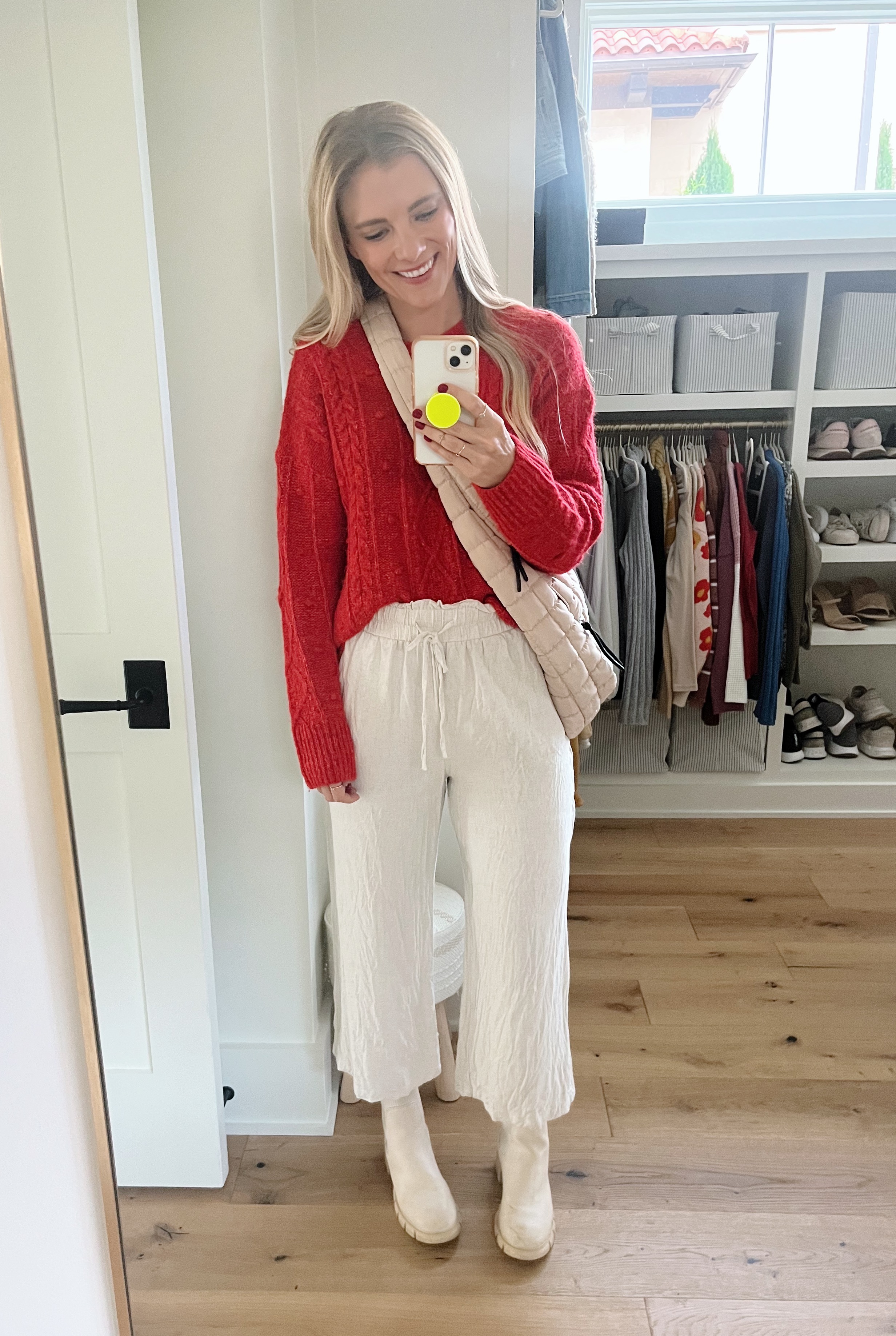 (Pants: Amazon / Sweater: Amazon / Bag: Amazon / Shoes: Reebok)