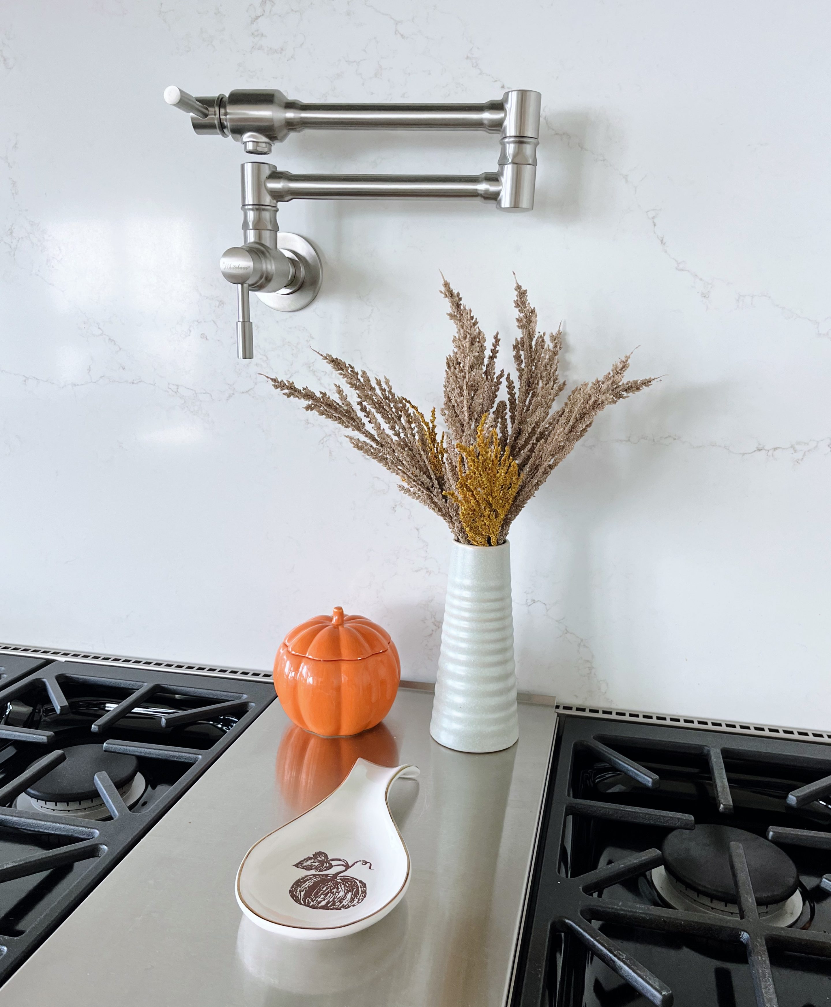 Ryder is apparently the decorating king in our house because he’s the one who kept me on top of things this week when he repeatedly asked if we could decorate our house for fall. Since we mostly opted out of decorating for the holidays last year (living in 4 houses in 6 months will suck the motivation to decorate right out of you), it felt extra fun to break into our fall décor earlier this week! We’re hoping to continue to add to the festive fall flare around our house once we visit a pumpkin patch and stock up on pumpkins but it still feels nice to see little splashes of orange and a bit of fall flare around our house.