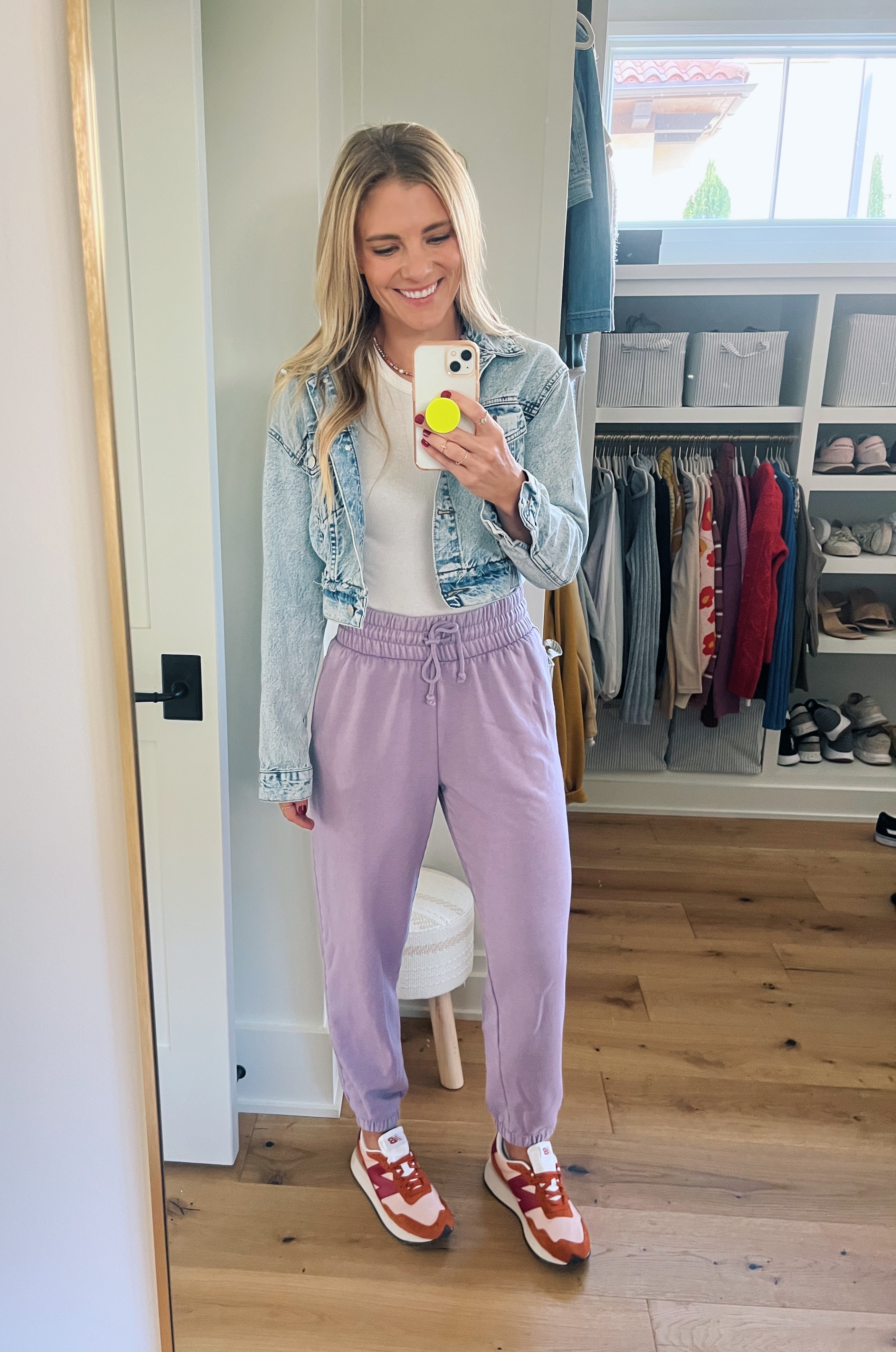(Pants: Target / Tank: Target / Shoes: New Balance / Denim Jacket: DAZE via my Nuuly rental)