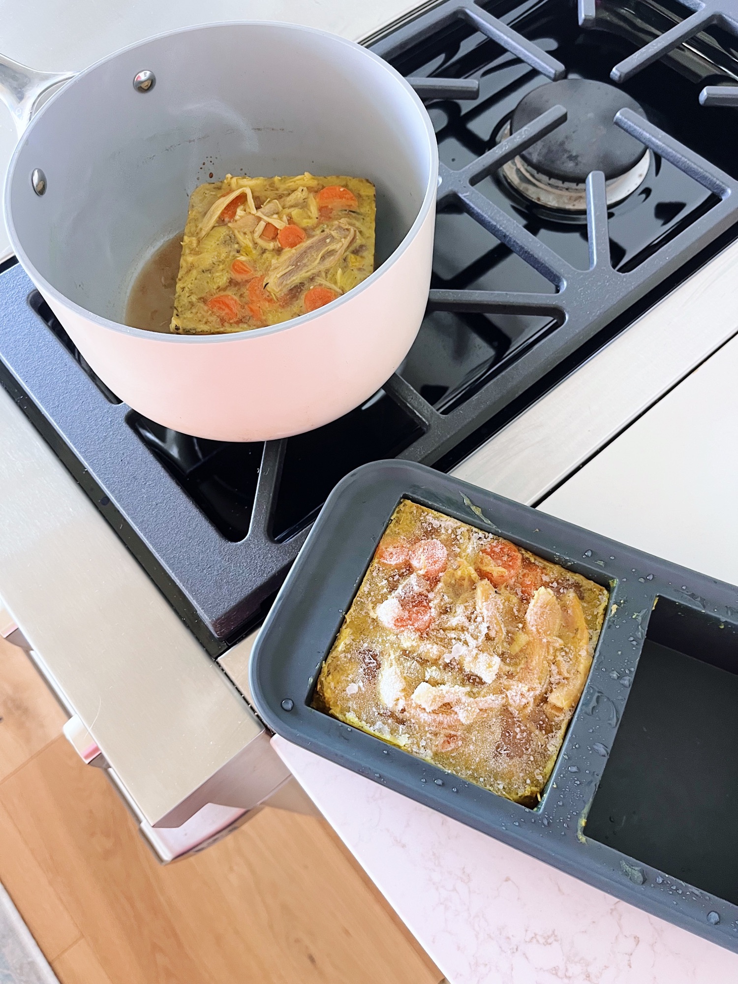 Souper Cubes are silicone freezer trays that come with a lid and make freezing your food a breeze. Food pops right out (truly, it releases from the trays so easily). And can then be transferred into your baking dish, slow cooker, a pot for reheating, etc. One tip: You can really get a lot of use out of your Souper Cubes by transferring the frozen molds out of the Souper Cubes and into freezer gallon bags once your food is completely frozen. This frees up your Souper Cubes to be used again!