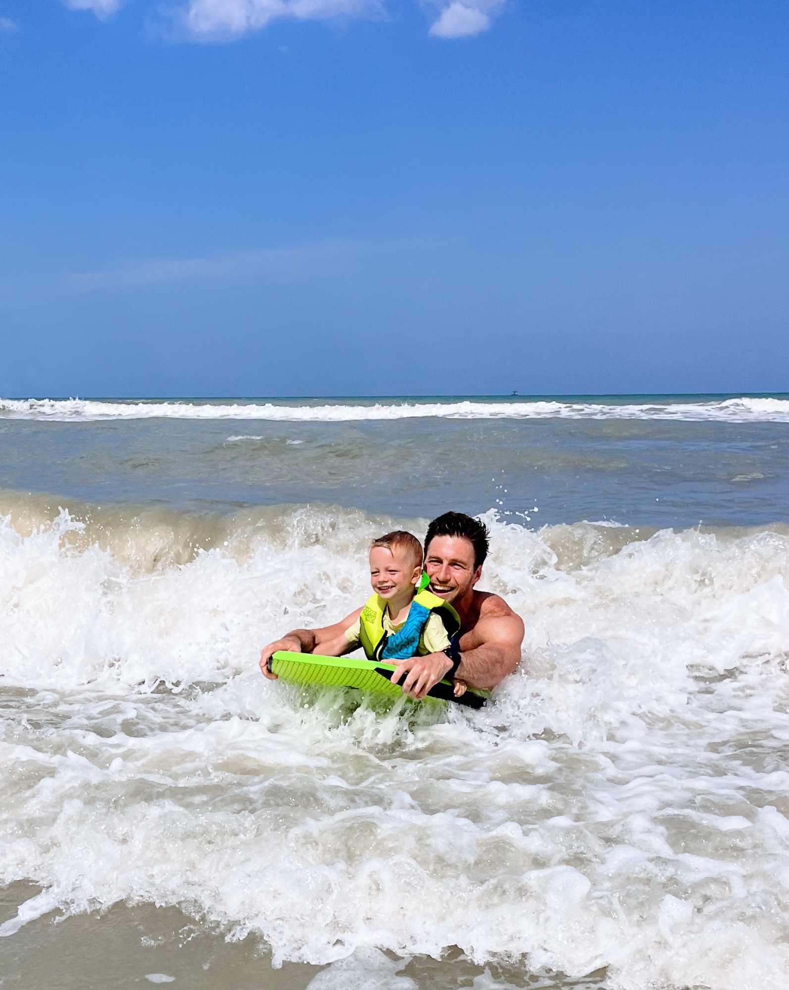 (Swimsuit: Maaji — it’s reversible and I love the support and coverage of the top. I just sized up in the bottoms for extra booty coverage. / Boys’ neon rash guards: Amazon and worth their weight in gold for swim safety and always being able to very quickly spot our kids)
