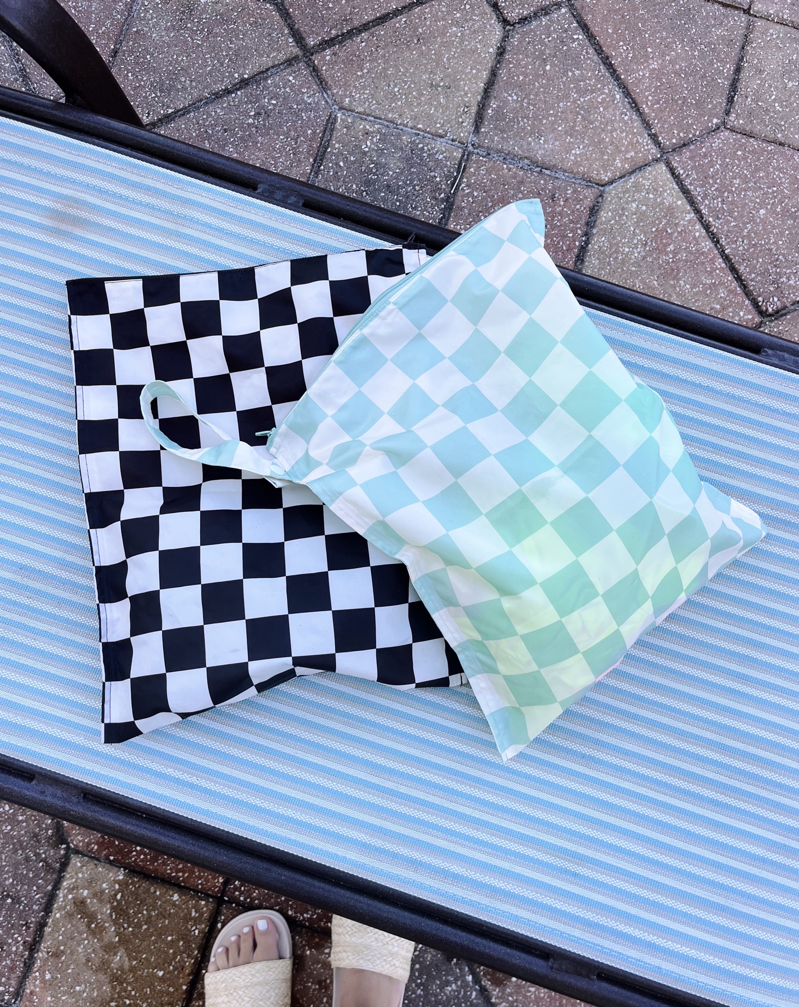 I cannot tell you how useful these waterproof wet bags are for our family this time of year! We’ve used wet bags for years for the boys’ soaking wet swimsuits after our pool and beach days and when the zipper broke on one of my beloved bags late last summer, I ordered a new-to-me two pack. We’ve been loving them even more because the checkerboard pattern makes them easy to spot in my beach bag and they’ve kept everything else in our bag dry as we haul wet stuff home from the pool. (When the boys were babies, I used a wet bag to keep their diapers and wipes separate and dry.)