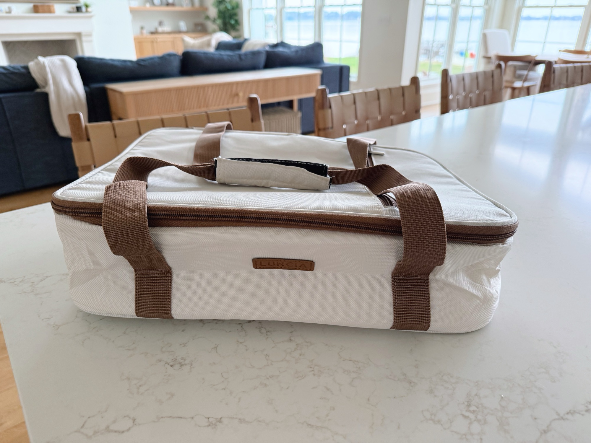 The carrier isn’t a hard cooler but more of a soft insulted carrier that keeps food you need to transport somewhere hot or cold. I’ve been able to fit two casseroles inside (I use these slim ice packs when keeping the food cold) and it’s been so helpful for bringing a meal to a friend who just had a baby, bringing a dish to a game night we had at a friend’s house two weeks ago, etc. I only wish I would’ve had it when I made a giant egg casserole for our girls’ weekend in the mountains!