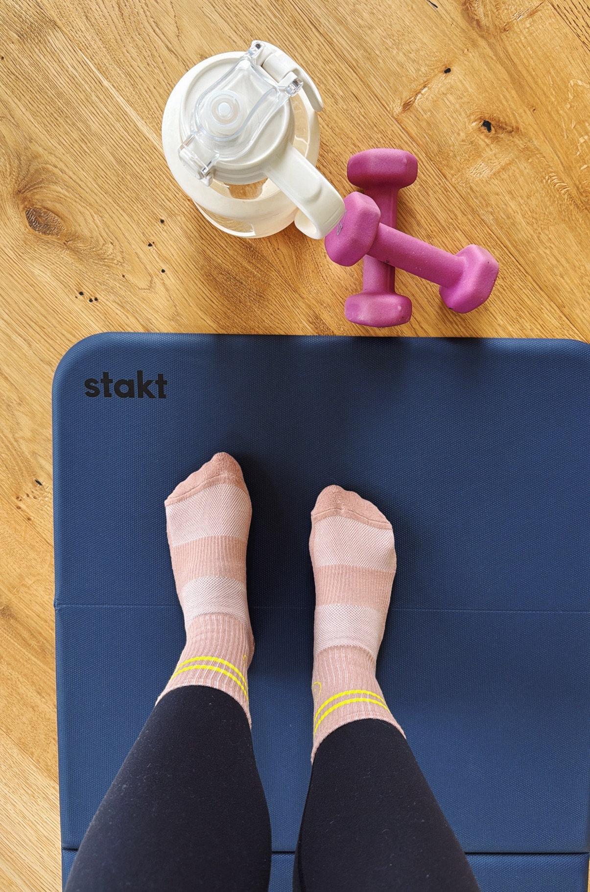 I recently upgraded my workout mat (I hesitate to call it a yoga mat, as I primarily use it for purposes other than yoga) and my Stakt Mat very quickly surpassed my love of all other mats I’ve used in the past. As I’ve gotten older, my whole body is more sensitive to hard surfaces so I really appreciate the way this mat is thicker than a traditional yoga mat. It stays firmly in place and I love the way it folds up (it doesn’t roll) so I can use it as a block, t00. (I especially love this especially for an elevated surface for lower body workouts at home — Bulgarian split squats, hip thrusters, etc., as well as chest presses/flyes, etc.)