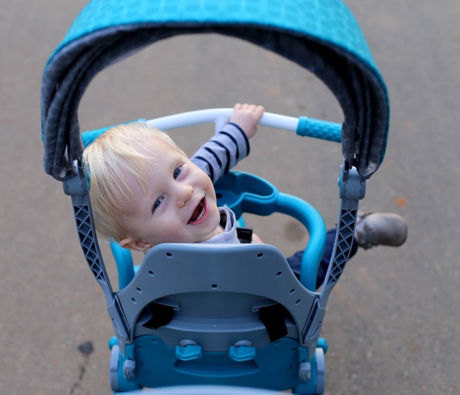 We used a version of this one with both our kids, and it was hilarious to see them hook their toes under the tray!