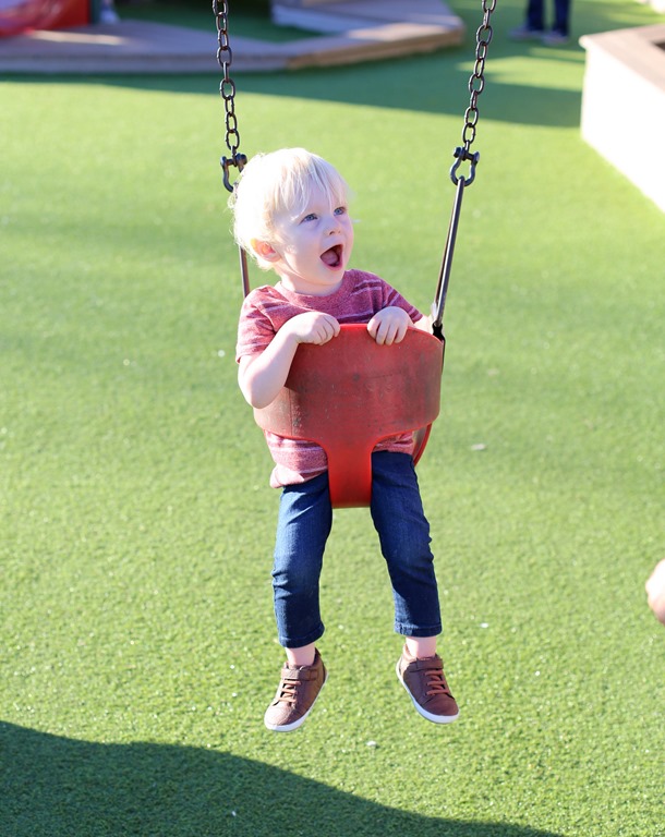 Chase is a very friendly, outgoing and social little guy and will stop to wave at almost everyone and will often top off his greeting by blowing kisses and saying a loud “Hiii!” He’s very chatty and loves telling us all about what he sees in the world around him. Though many of his words are toddler versions of real words (“pleene” for “plane” and “aw-riiight” for “alright” etc.), he’s talking a lot and I just love to hear him chatter away in his sweet high-pitched voice. He babbles away all day, dances, sings (“row, row, row” over and over again for “Row Row Row Your Boat” is his current song of choice”), twirls and wants to get into anything and everything within his reach.