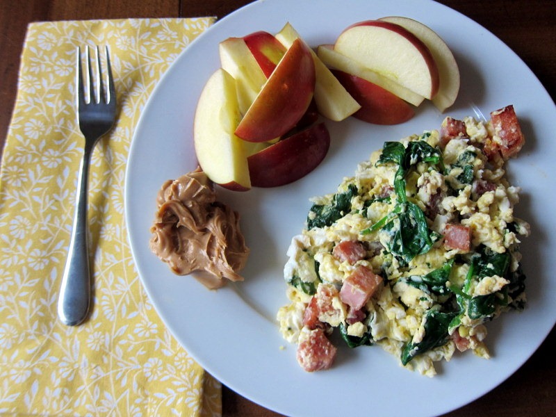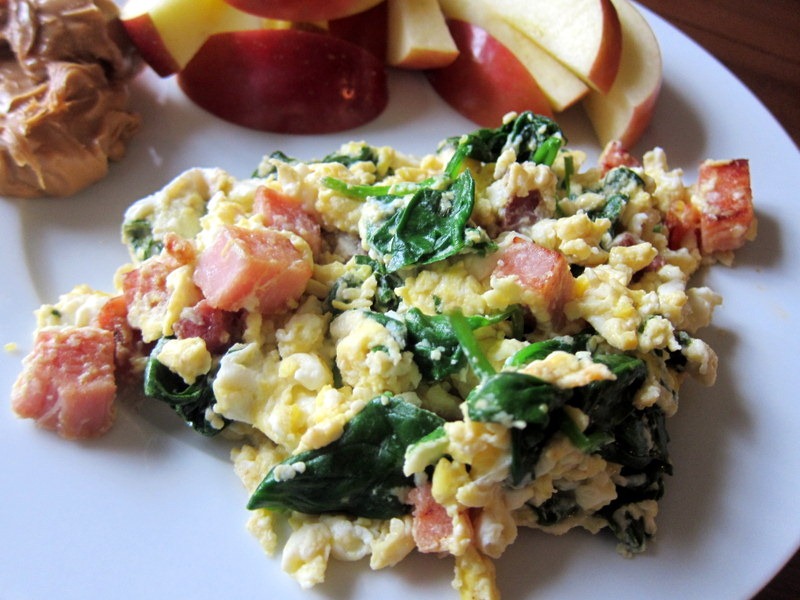 Today began like most Sundays do around here. Ryan and I sat down to a delicious breakfast that included scrambled eggs made with ham and spinach.