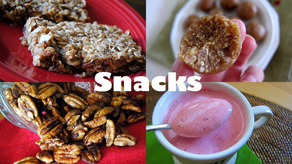 - Snacks (Granola bars, spiced nuts, date balls, healthy granola, dips, etc.)