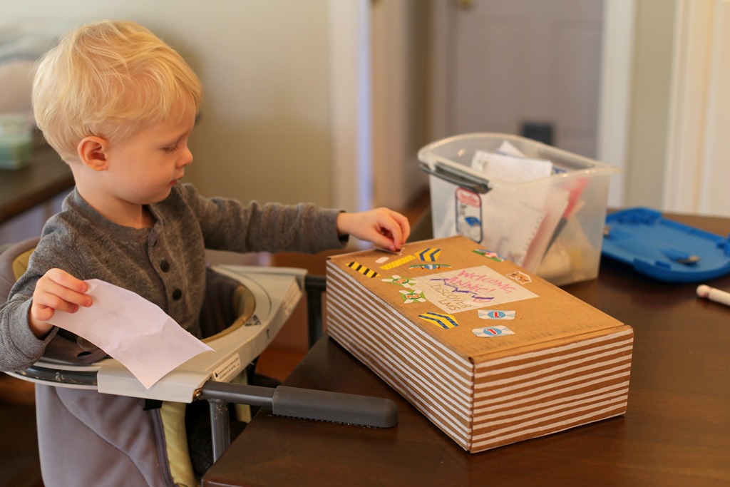 Chase woke up for the day around 7:15 a.m. and we eased into the morning with some books and train table play time. I initially had plans to head off to a mom’s mentoring group in the morning which would’ve involved two hours of childcare but Chase seemed a little sensitive and I didn’t want to push too much and unload him on kind childcare people we didn’t know. I decided to stick with something more familiar to Chase and we headed off to boot camp a little after 9 a.m. where he played with his BFF Claire and worked on an adorable St. Patrick’s Day art project.