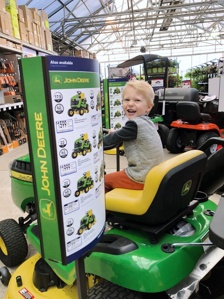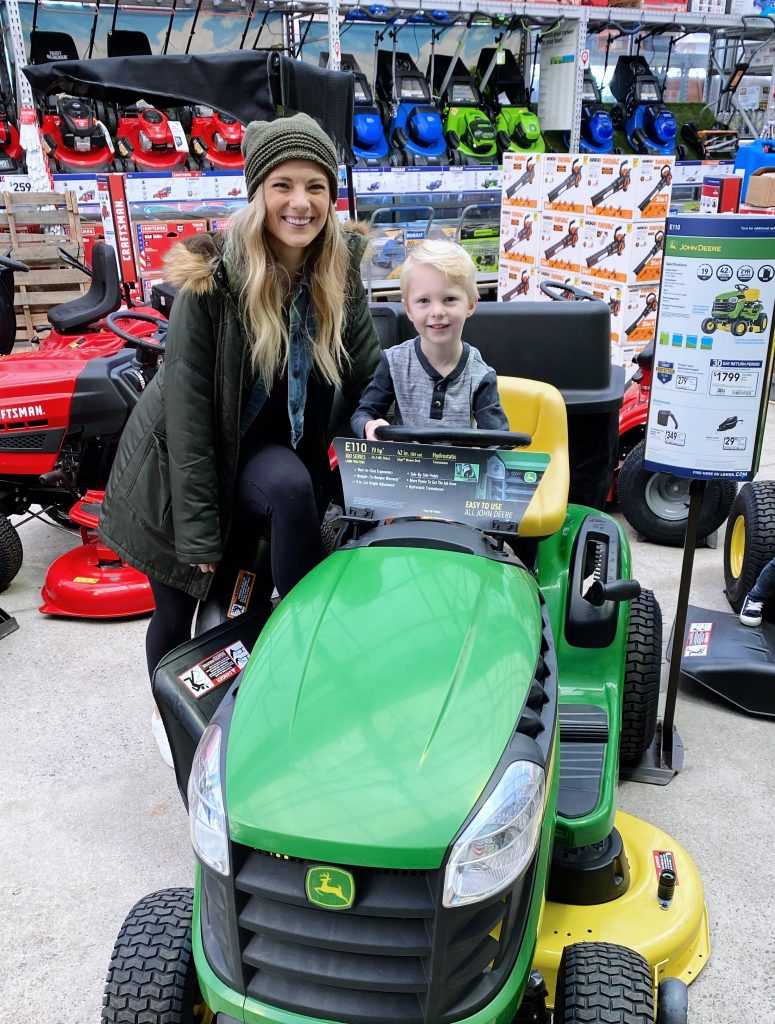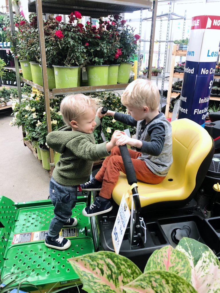 Most of the time our family trips to Lowe’s look like me riding the tractors with the boys while Ryan runs all over the store shopping for whatever items are on our list.