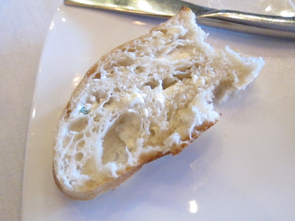 Our meal began with freshly baked bread that was unreal. So, so doughy. I carboloaded before our meal and ate three four slices smeared with super-soft, herbed cream cheese. I was starving!