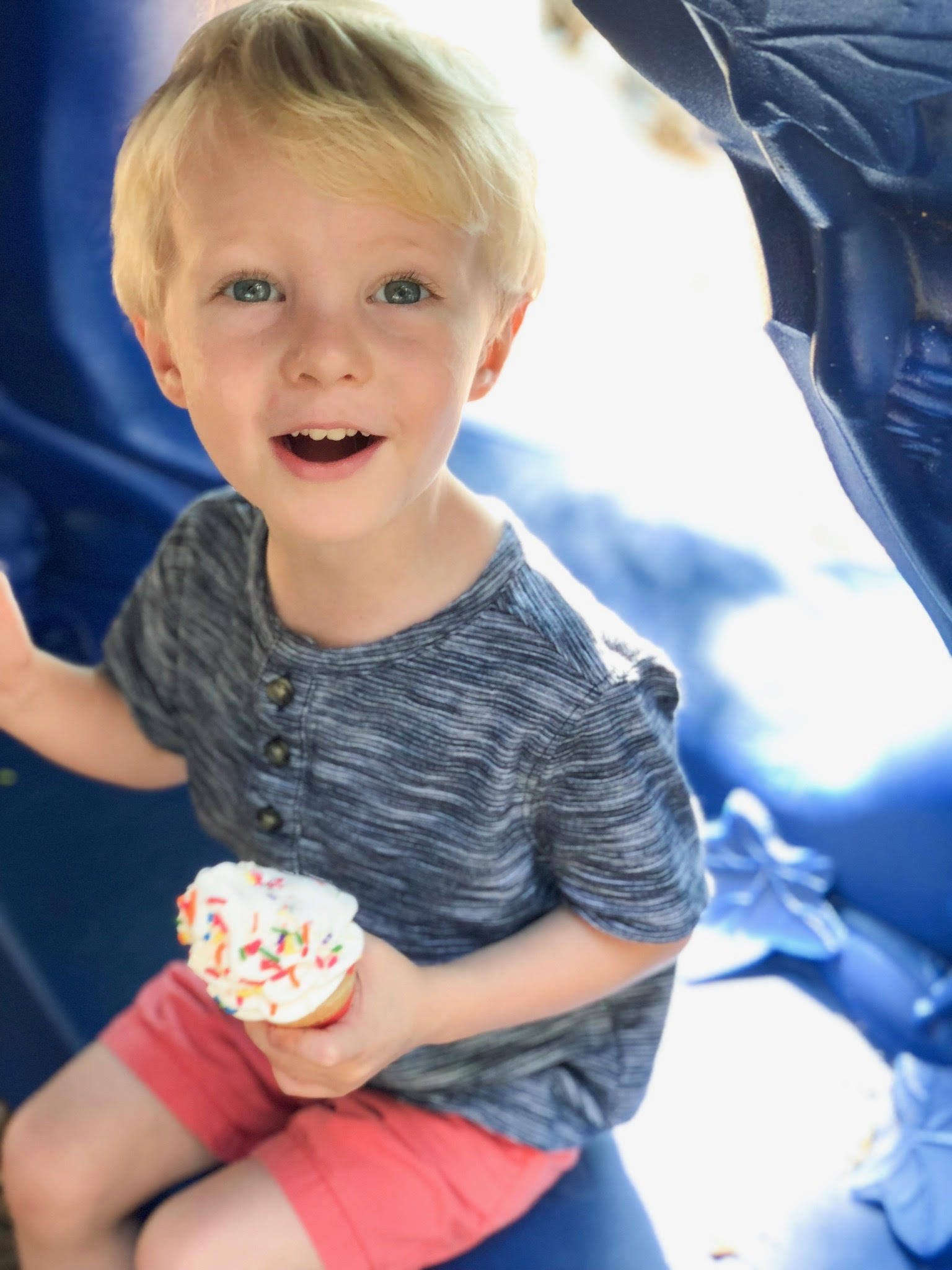 Most families didn’t stay too long at the playground because it was 90+ degrees outside and since I could tell the heat wasn’t Ryder’s friend, we said our goodbyes as well.