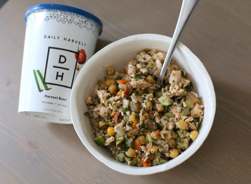 Yesterday’s lunch looked like a combination of salmon and a Daily Harvest chickpea + za’atar harvest bowl.