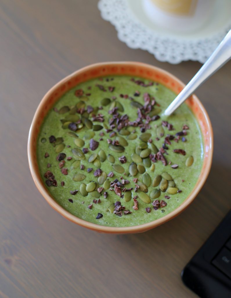 I whipped up a thick and creamy smoothie bowl that included a rather ridiculous number of ingredients.