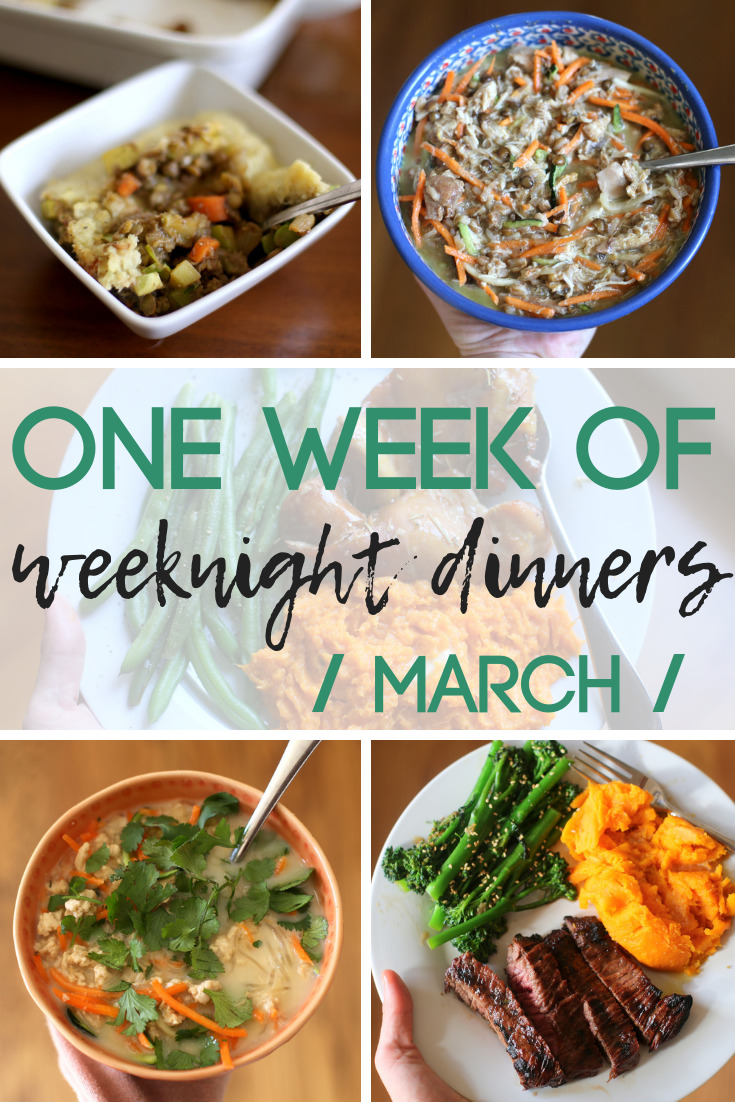 This post is the third one in my monthly weeknight meals series and includes a mix of slow cooker, vegetarian and Paleo recipes. I was clearly excited to continue using two of my favorite cookbooks, so you’ll notice a few recipes I made this week came from them as well!