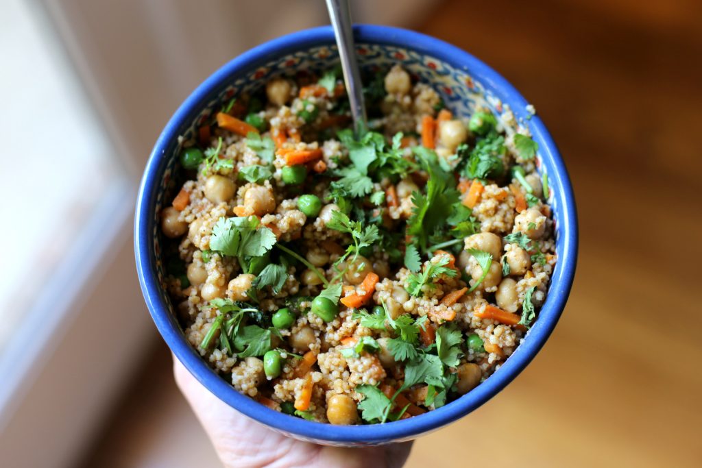 This dinner was all kinds of strange but somehow it worked! I started by cooking up some couscous on the stovetop to use as a base in this dish. I then added a can of chickpeas and frozen peas and carrots to the tiny fluffy pasta and stirred in a packet of Mike’s Organic Curry Love Tikka Masala sauce I previously ordered from Thrive Market. I honestly thought this dinner was going to be a bit of a hot mess but we loved it! The fresh cilantro added the perfect punch of bright flavor to the otherwise savory dish and it was quite filling. I made enough for leftovers for lunch on Thursday and liked it just as much the next day.