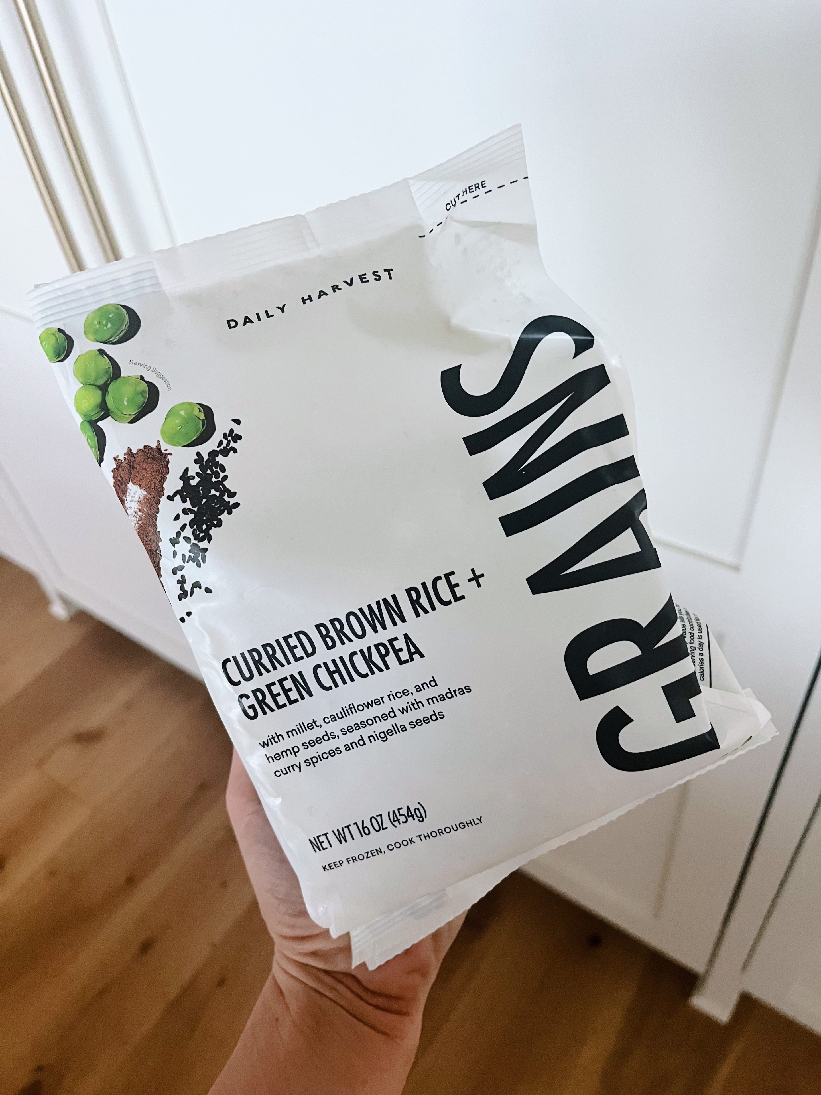 On Wednesday night, I participated in an evening Zoom call with a bunch of influencers and a guest chef through Daily Harvest. (Bachelor fans, there were some former contestants and even a former Bachelorette on the Zoom and I said to Ryan, “I wonder how I can privately DM them and fan girl a bit and he was like, “Umm, you don’t.” Solid advice, I suppose. I settled with texting my girlfriends a pic of the Zoom screen instead. Haha!) Anyway, we made dinner on the Zoom call using some of the new grains packages Daily Harvest sent our way. Even though I already ate dinner earlier on Wednesday night, I essentially ate a second round of dinner because the meal we prepared was so good! Luckily I made a double batch of the recipe and the leftovers were a welcomed meal on Friday evening, too, especially since Chase had a soccer game that night and we were on the lookout for something quick and easy.
