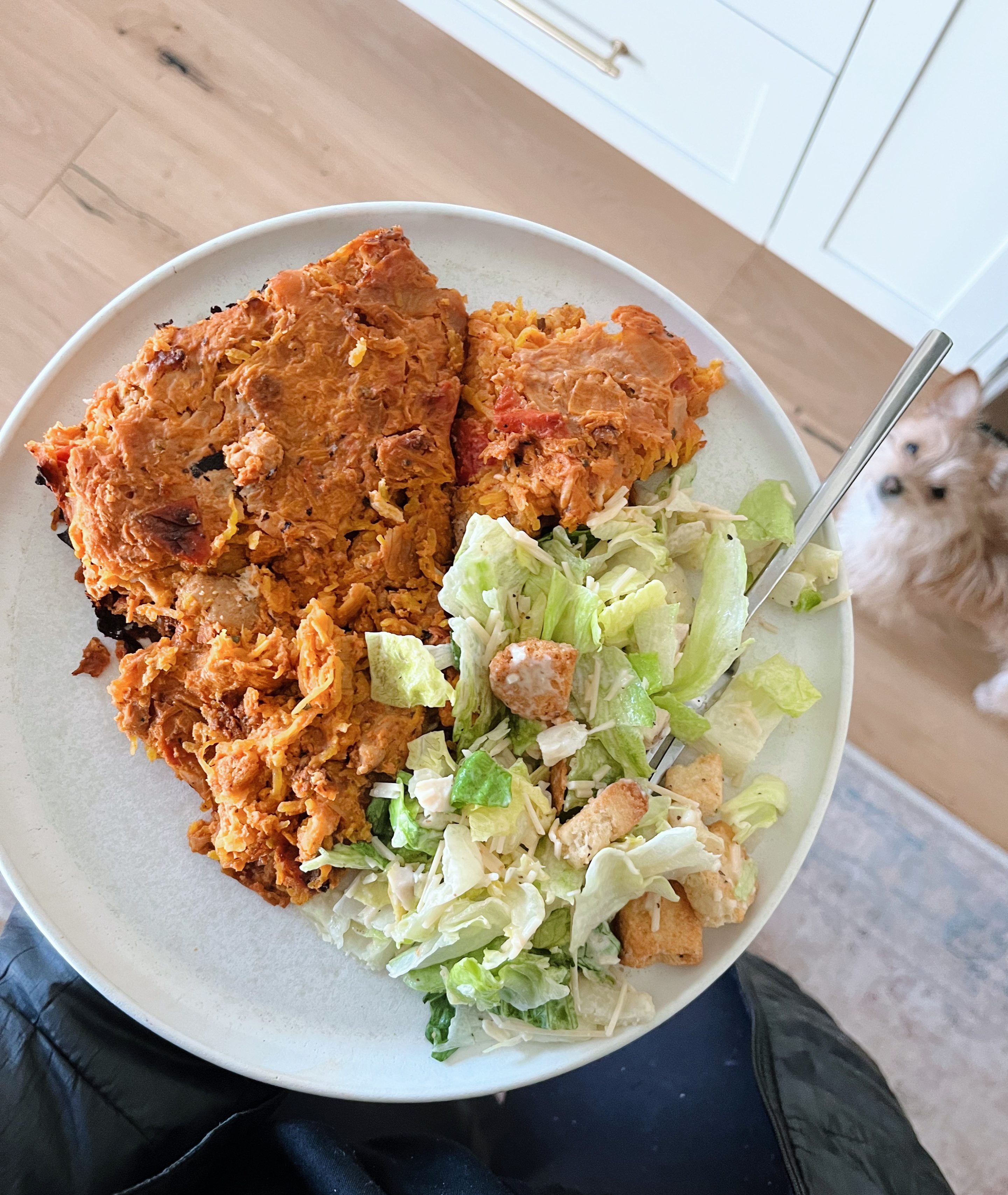 Monday: PaleOMG Pizza Spaghetti Pie + Caesar Salad