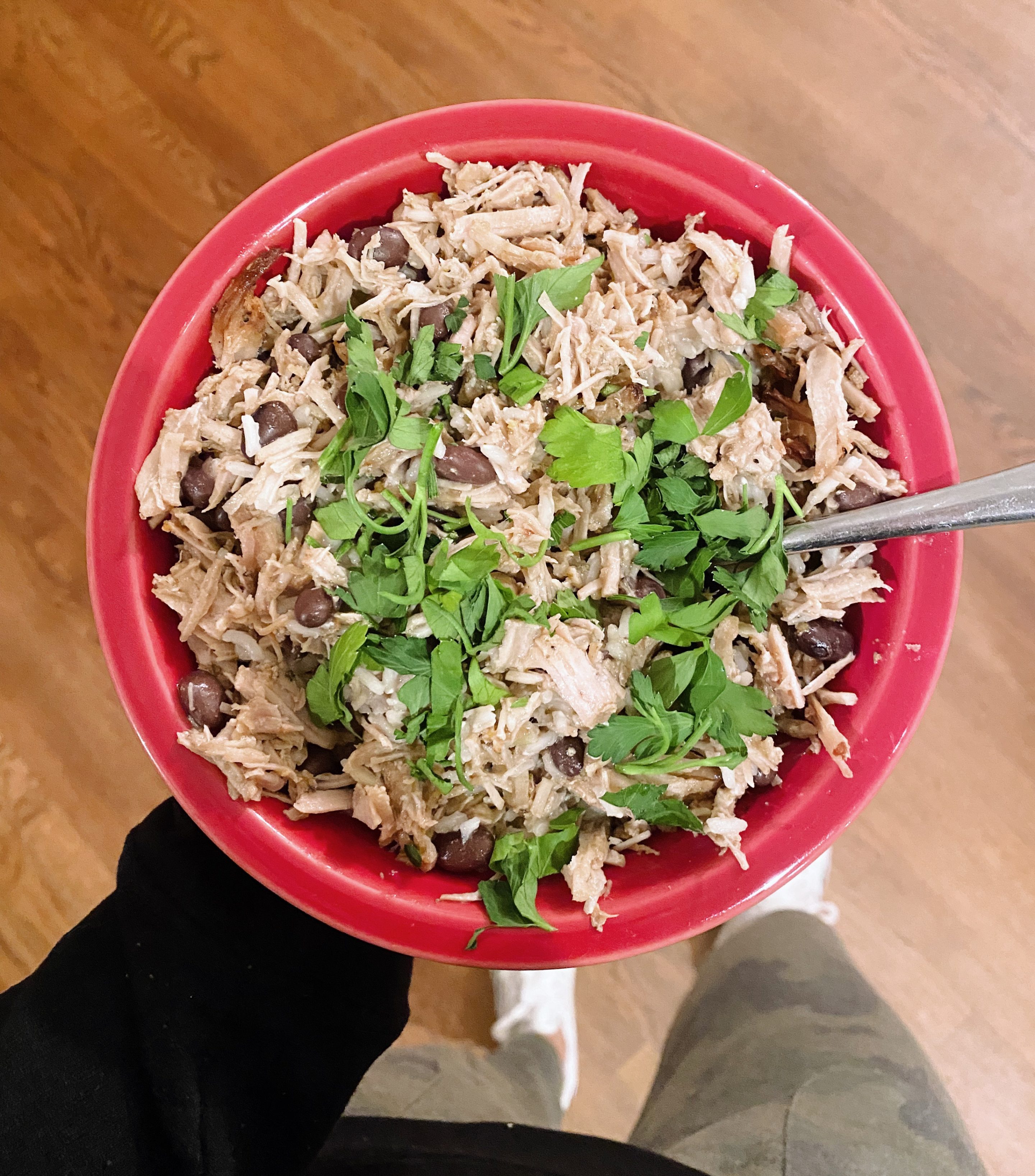 This dinner might look familiar to you because it was so delicious that I couldn’t resist sharing it in my Things I’m Loving Friday roundup of favorites! I made fajita bowls for our family and they came together easily thanks to the Instant Pot. I combined 2 pounds boneless, skinless chicken thighs with 1 pound of frozen sliced bell peppers, 1 sliced onion, 1 3/4 tablespoons fajita seasoning (I used Fajita Magic) and 1 cup reduced sodium chicken broth in the Instant Pot and cooked it on high pressure for 9 minutes before shredding the chicken and dumping everything in a colander to drain off the broth. I then served the chicken over brown rice with black beans and avocado and it was so good! We often do some variation of salsa chicken in the crock pot so this was a nice way to change things up a bit!