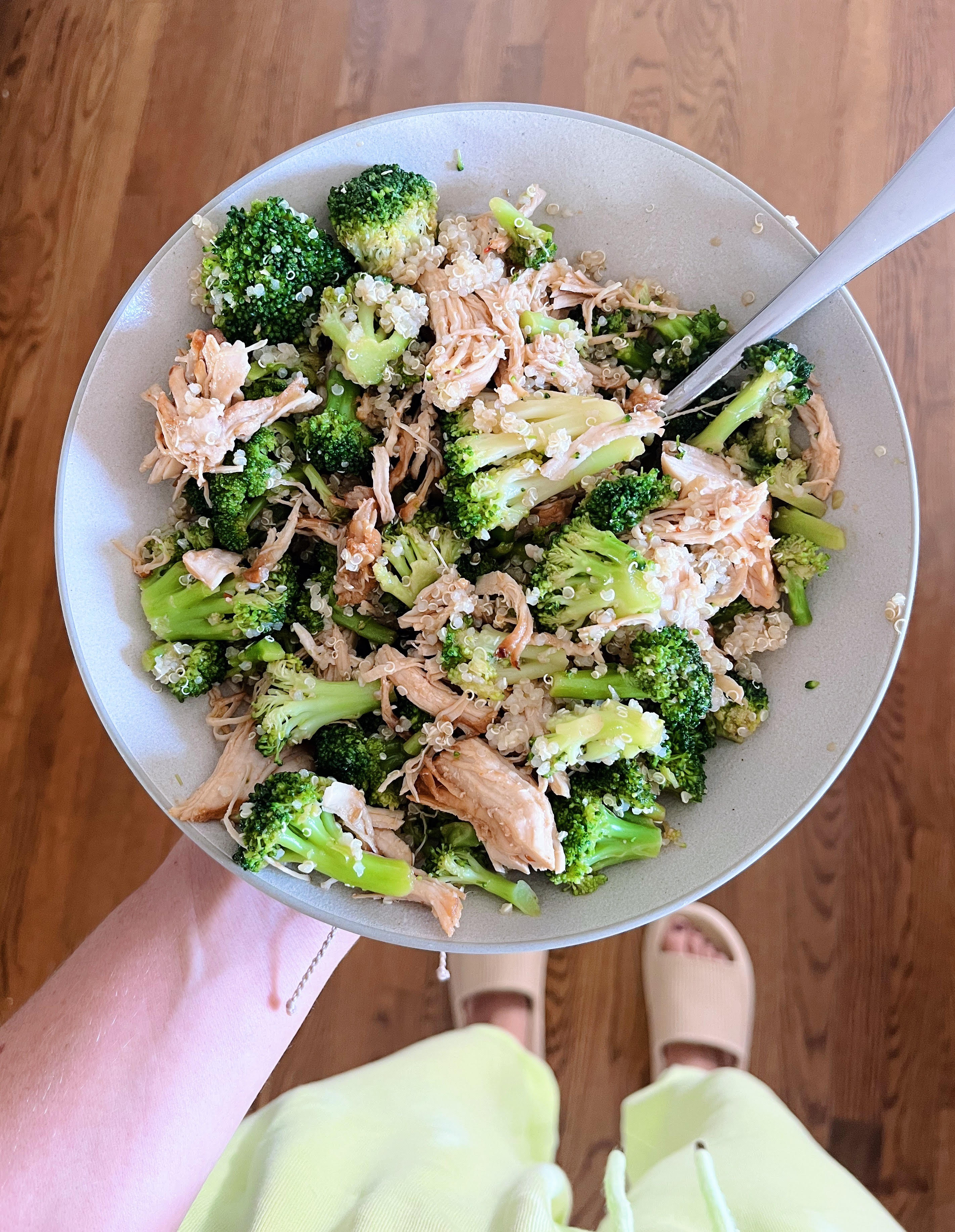 This recipe had a lot of moving pieces but was actually quite easy! In the morning, I made a batch of quinoa on the stovetop and also cooked up some teriyaki chicken in the Instant Pot by combining chicken thighs with teriyaki sauce (I used Kevin’s teriyaki sauce I bought through Thrive Market) and chicken broth. Then, when it was time for dinner, I made a double batch of my ginger sesame broccoli and added the shredded teriyaki chicken to the broccoli once it was done before adding in the cooked quinoa. This meal was a big-time winner and even Ryan liked it despite his lack of love for quinoa.