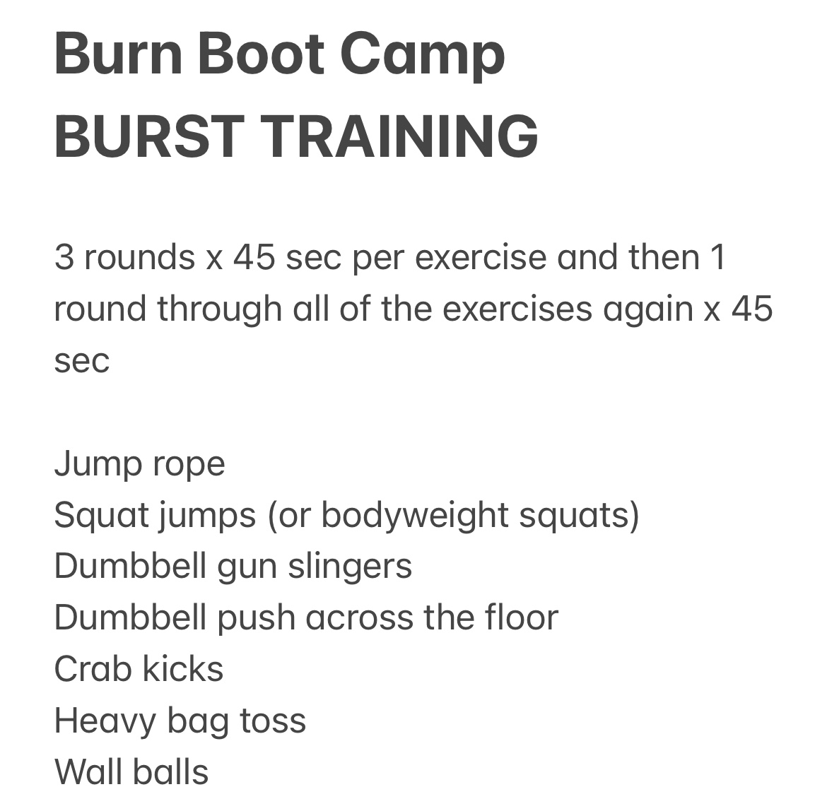 Wednesday: Burn Boot Camp Burst Workout