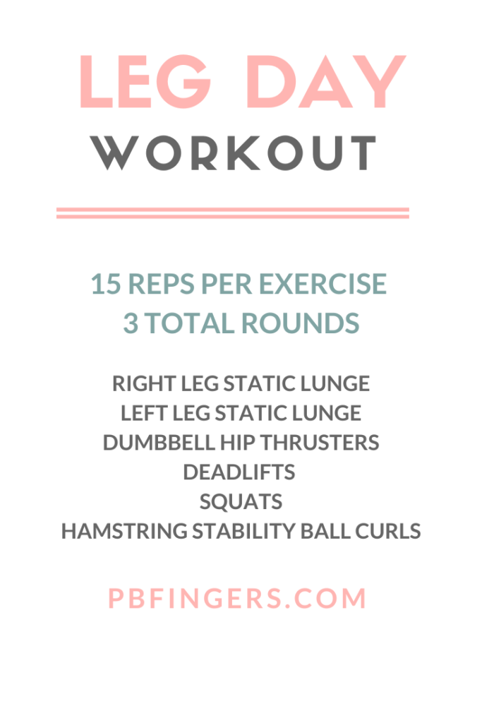 For Thursday’s workout, I did a throwback leg day workout from the blog but decreased the reps from 15 to 10-12 for each exercise with heavier weight. It was a good one that left my legs feeling strong but fatigued by the end.