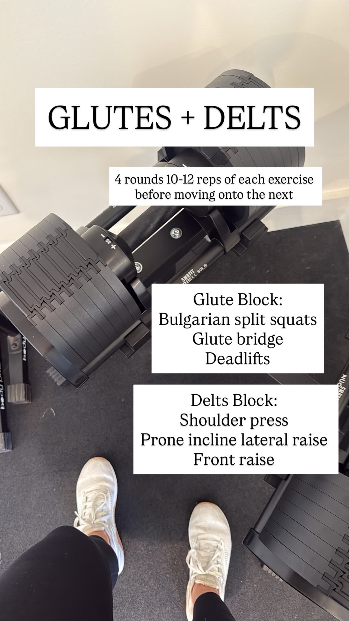 On Monday morning, I completed a workout with two separate blocks: One that focused on my glutes and the other that targeted my shoulders. This format made the workout fly by and honestly helped me work a little harder since each block was rather short and over fairly quickly.