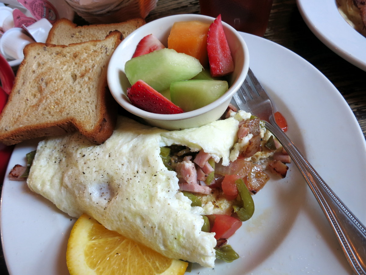Once we were seated inside the cozy Toast Café, we dug into the complimentary cornbread and apple butter (love!) and when and it was time to order, I selected the egg white omelet with ham, cheese and veggies.