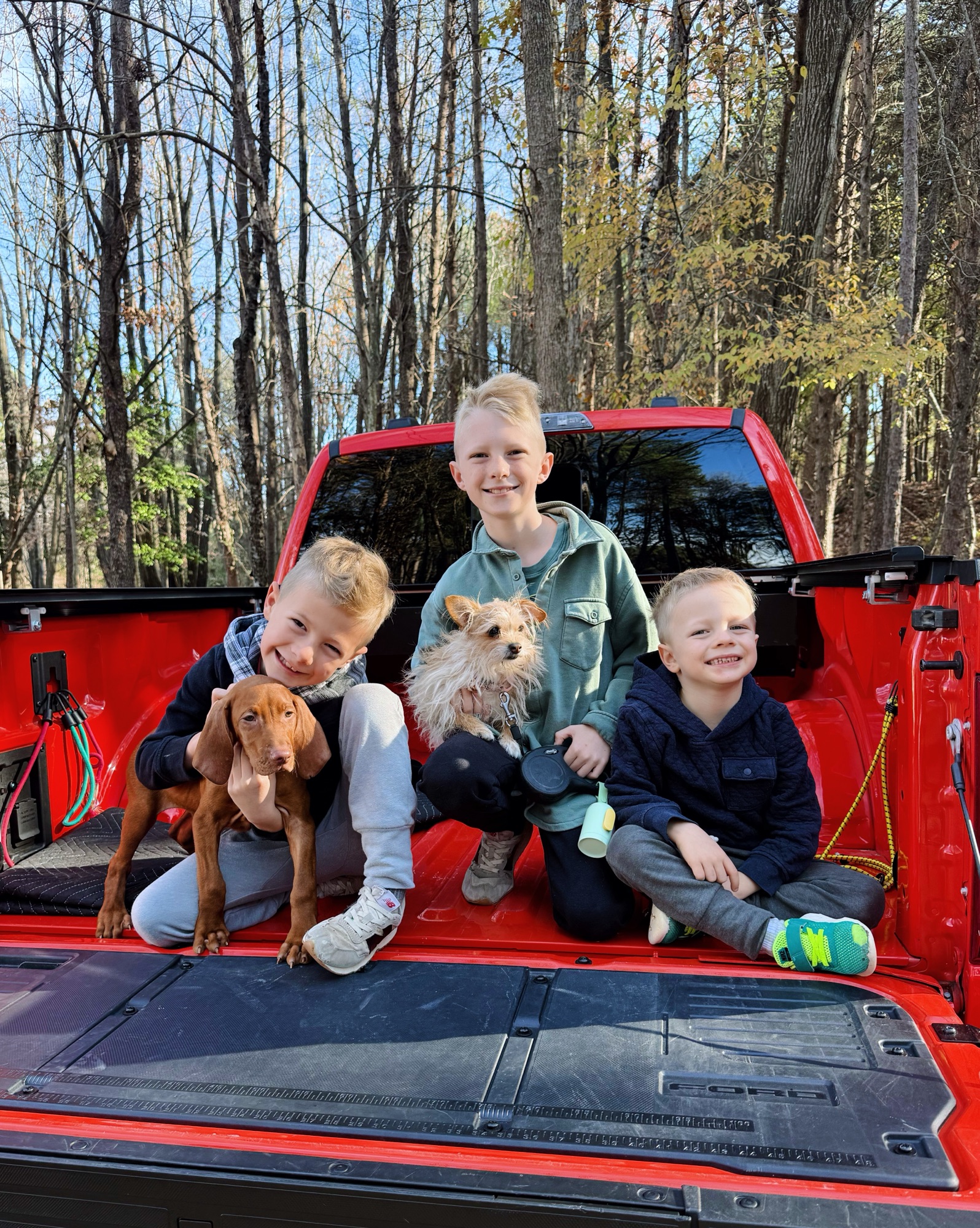 For anyone who might be new(er) to the blog, Ryan and I got our first vizsla, Sadie, soon after we graduated college and to say she captured our hearts would be a huge understatement. We refer to her now as our “baby before our babies” and she was truly a part of our family. We’re very familiar with vizslas and understand how much work goes into puppy vizsla life but, even still, it’s been nearly 18 years since we’ve had a puppy vizsla so I’m finding myself diving into books about vizslas, training vizslas and owning a vizsla all over again. The boys are also really interested in being involved in training Comet which is fun! And Chase is really interested in exploring some dog competitions with Comet eventually (agility or other companion events) which would be really cool. We’ll see! It’s all new and fun and a little crazy!