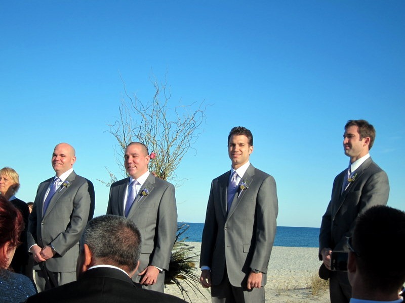 Alex looked absolutely gorgeous in a long, lace dress and the groom and groomsmen looked handsome in gray suits with lavender ties.