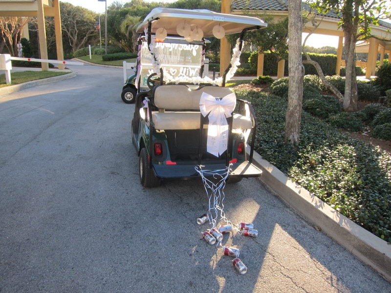 They took off in their wedding golf cart… the one Ryan and I decorated earlier in the day!
