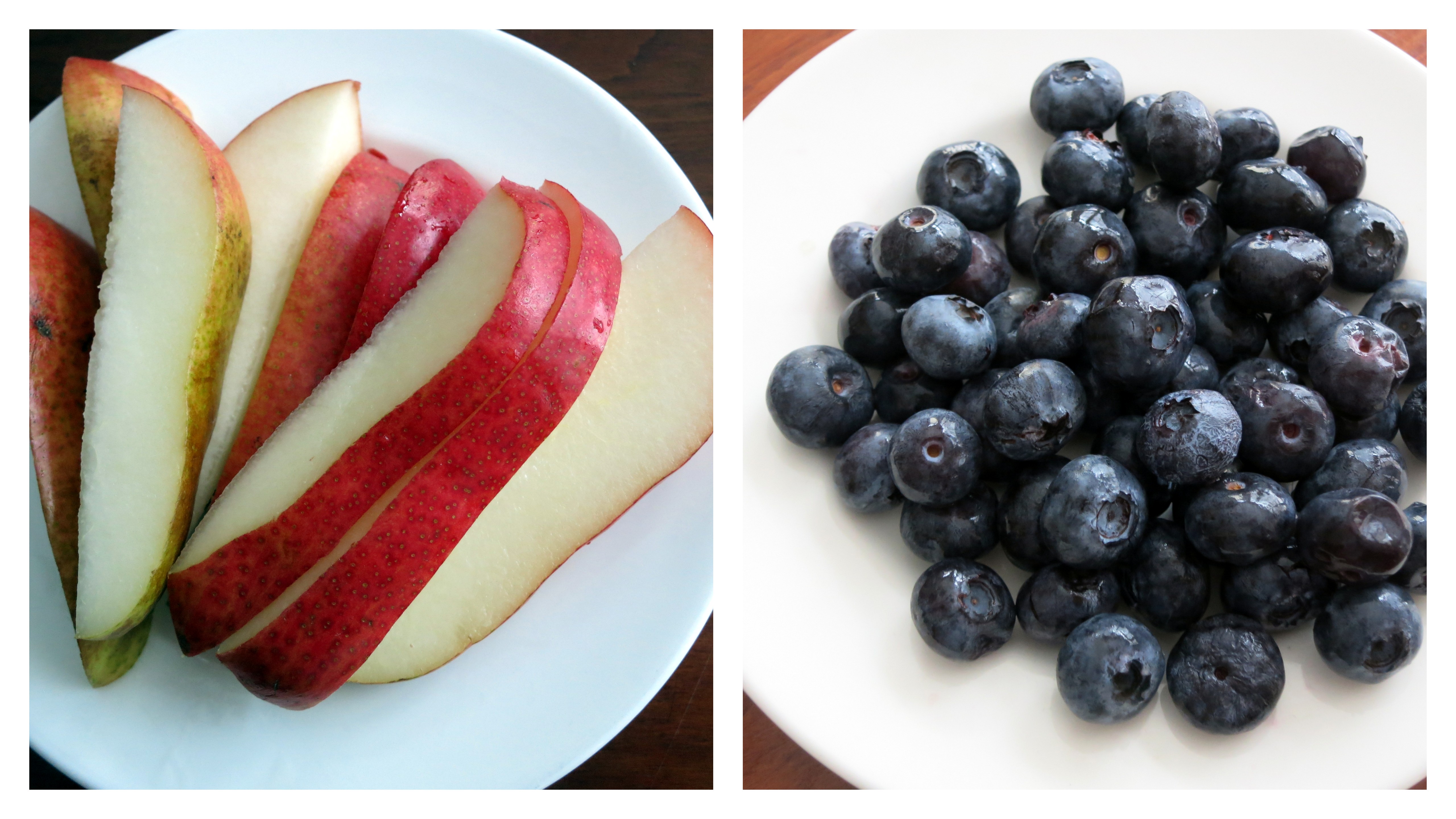 The first part of breakfast this morning was enjoyed in my aunt’s kitchen. When we woke up, the power was out (hooray for a fully-charged laptop!!), so I cut up a pear and ate some blueberries to take the edge off my hunger.