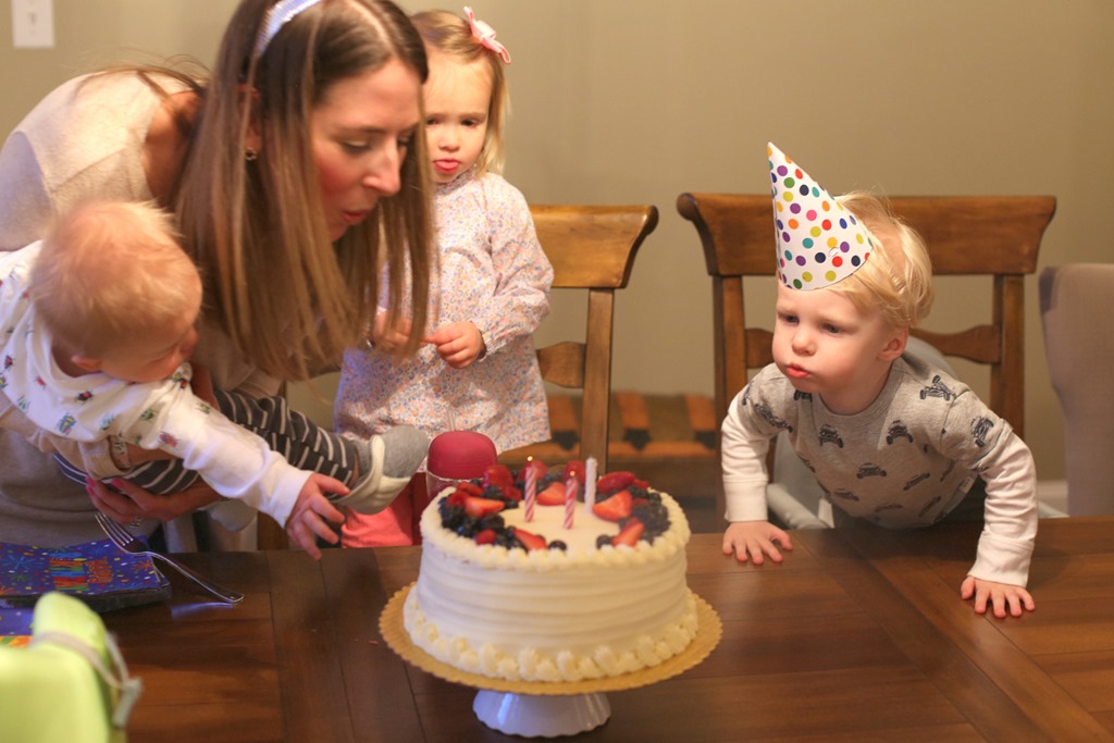 Lol love Chase’s little intense face as he’s helping to blow out the birthday candles. For my daughter’s first birthday I had a total mom fail. I got a sparkler for her cake and it absolutely terrified her! Didn’t do that again at her second birthday. Just a regular old candle. Lol